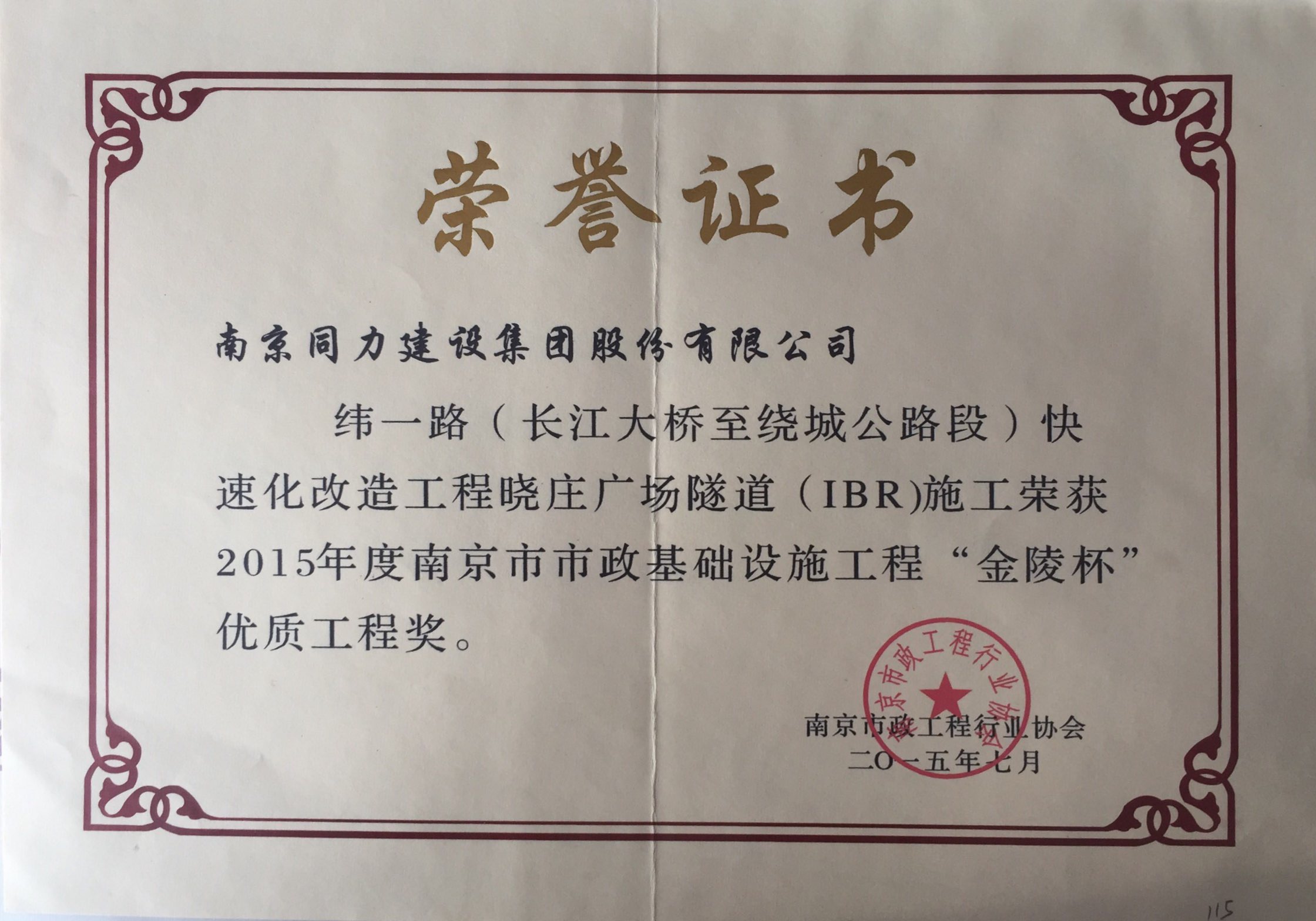 曉莊廣場(chǎng)隧道項(xiàng)目工程獲得“金陵杯”優(yōu)質(zhì)...