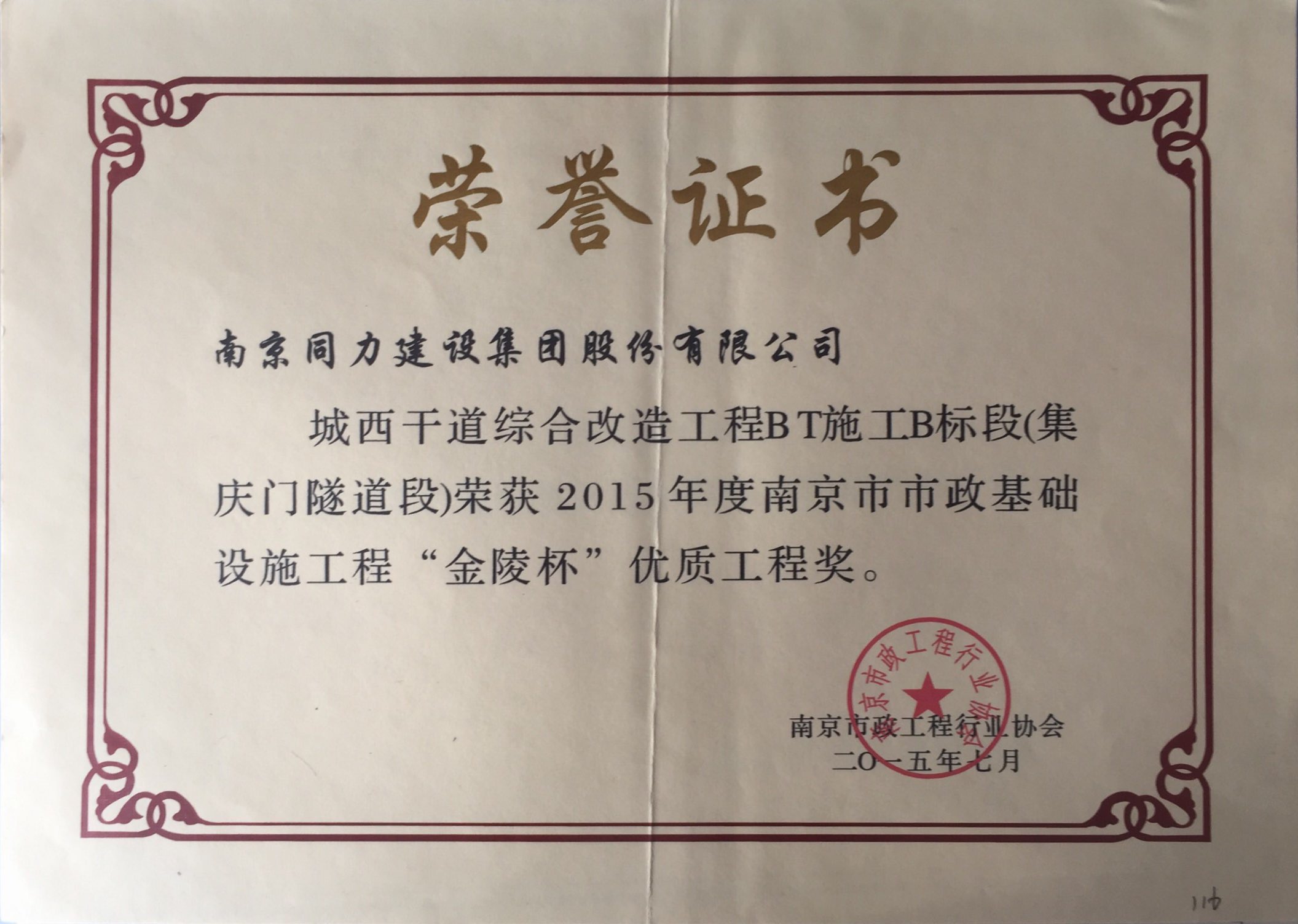 中央北路隧道項(xiàng)目工程獲得“金陵杯”優(yōu)質(zhì)...