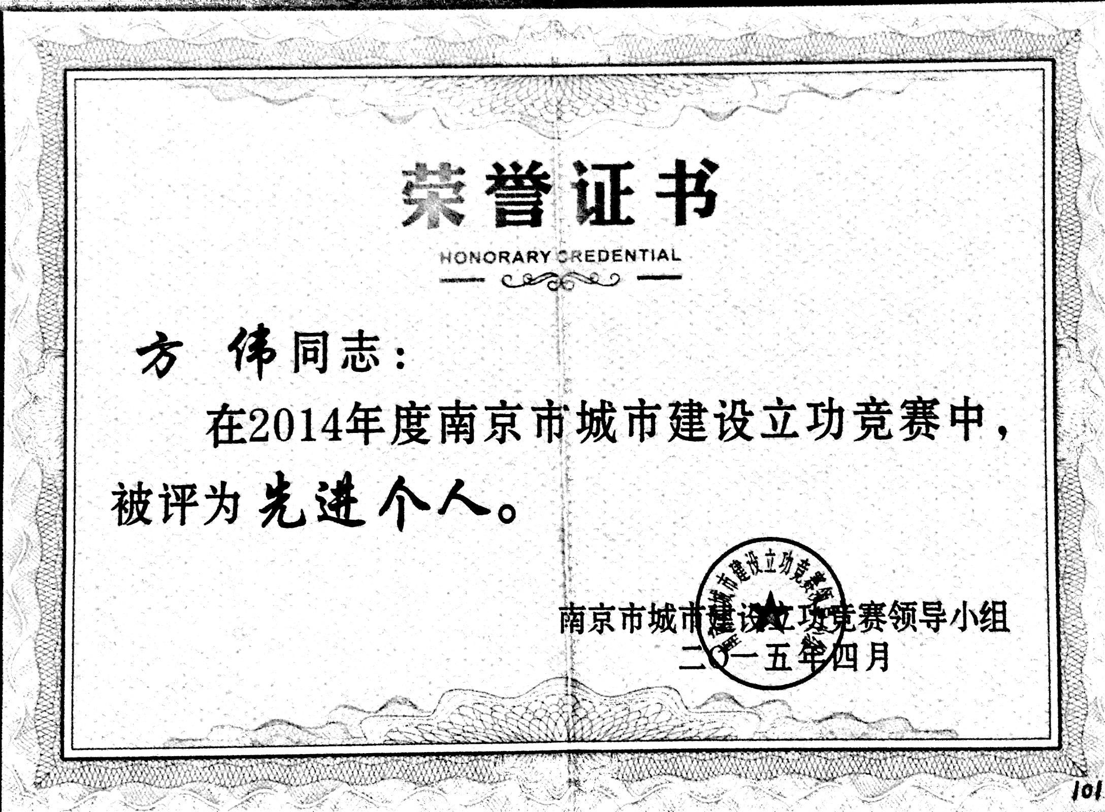 公司方偉在2014年度南京市城市建設(shè)立功...