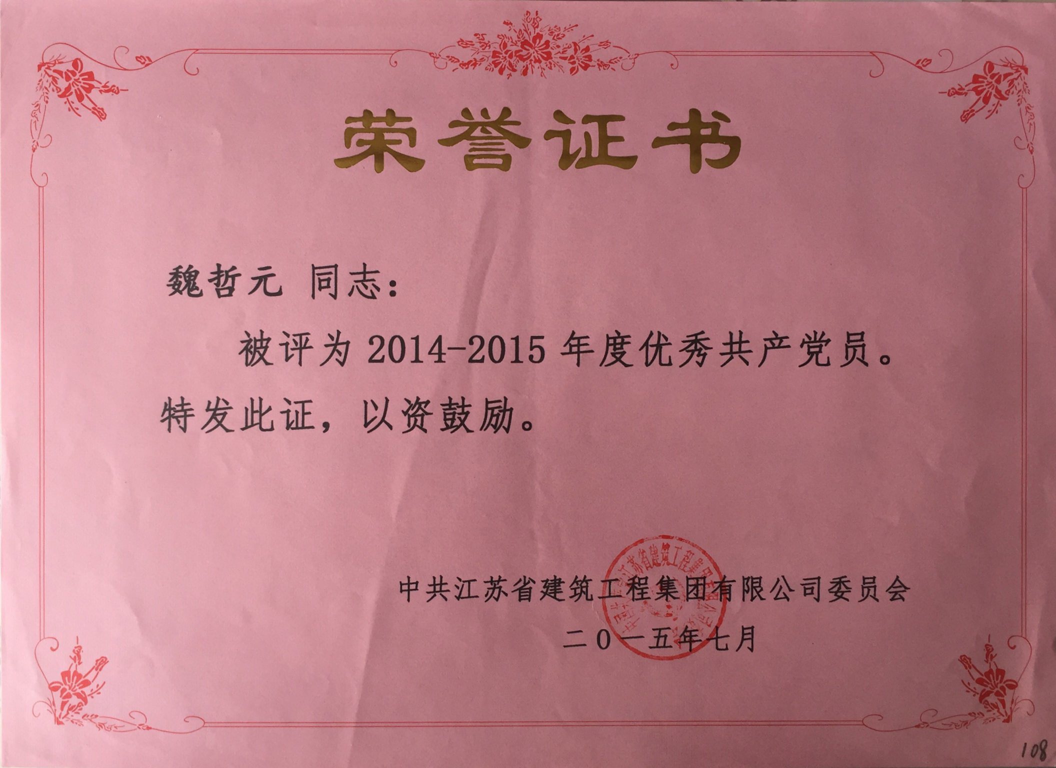 公司魏哲元被評為2014-2015年度優(yōu)秀共...