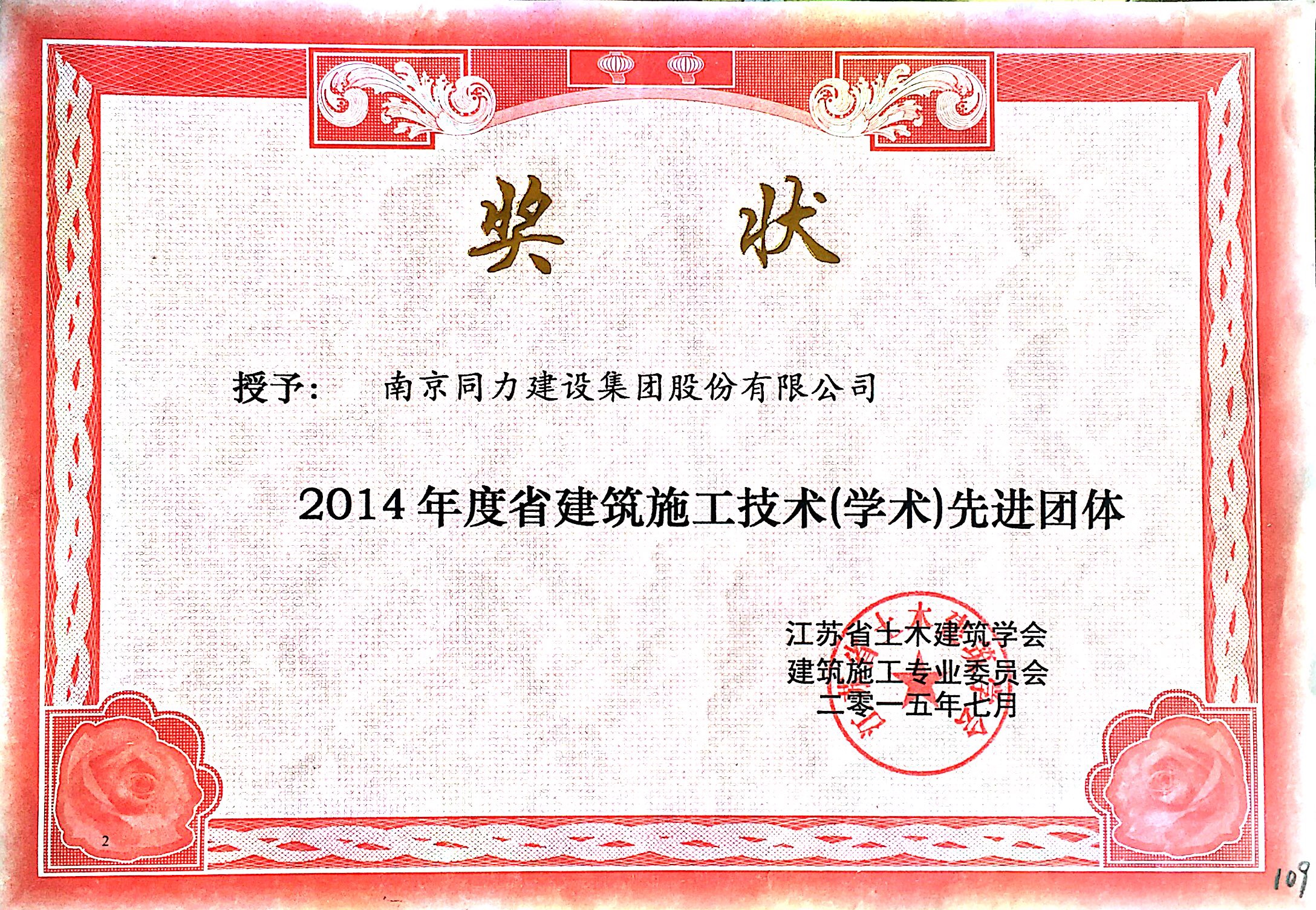公司被授予2014年度省建筑施工技術(shù)(學(xué)...