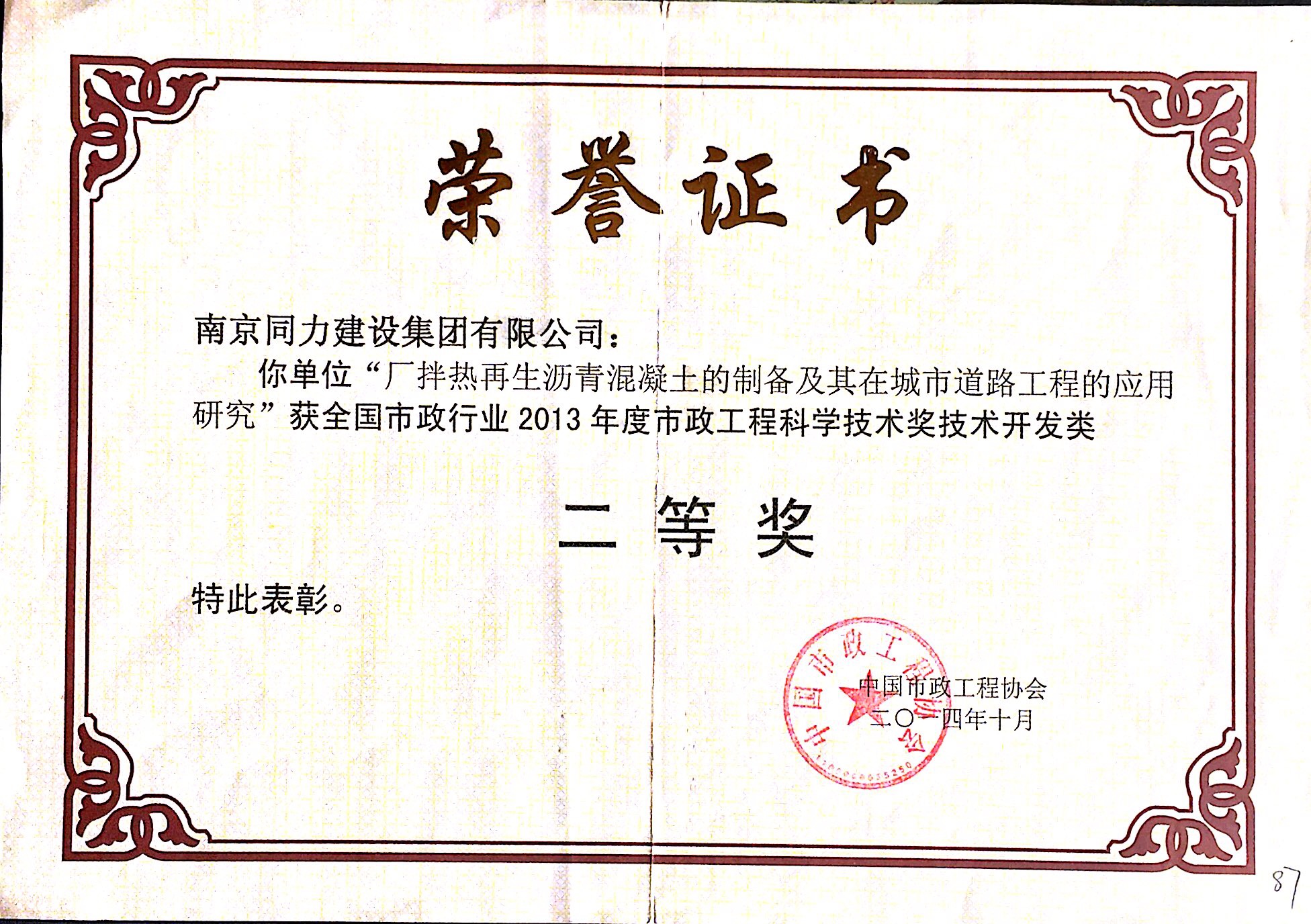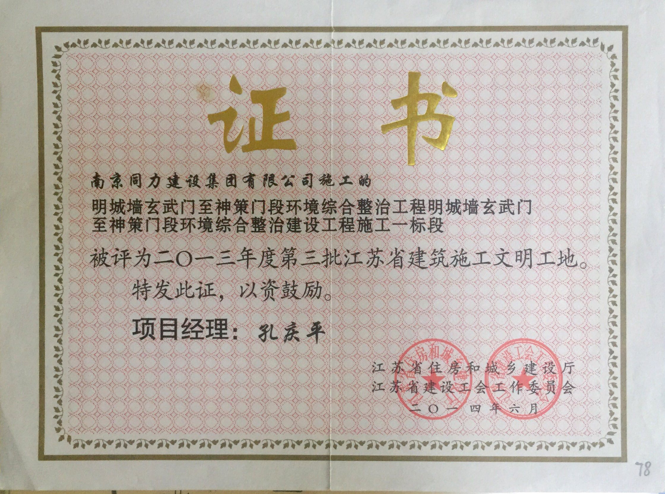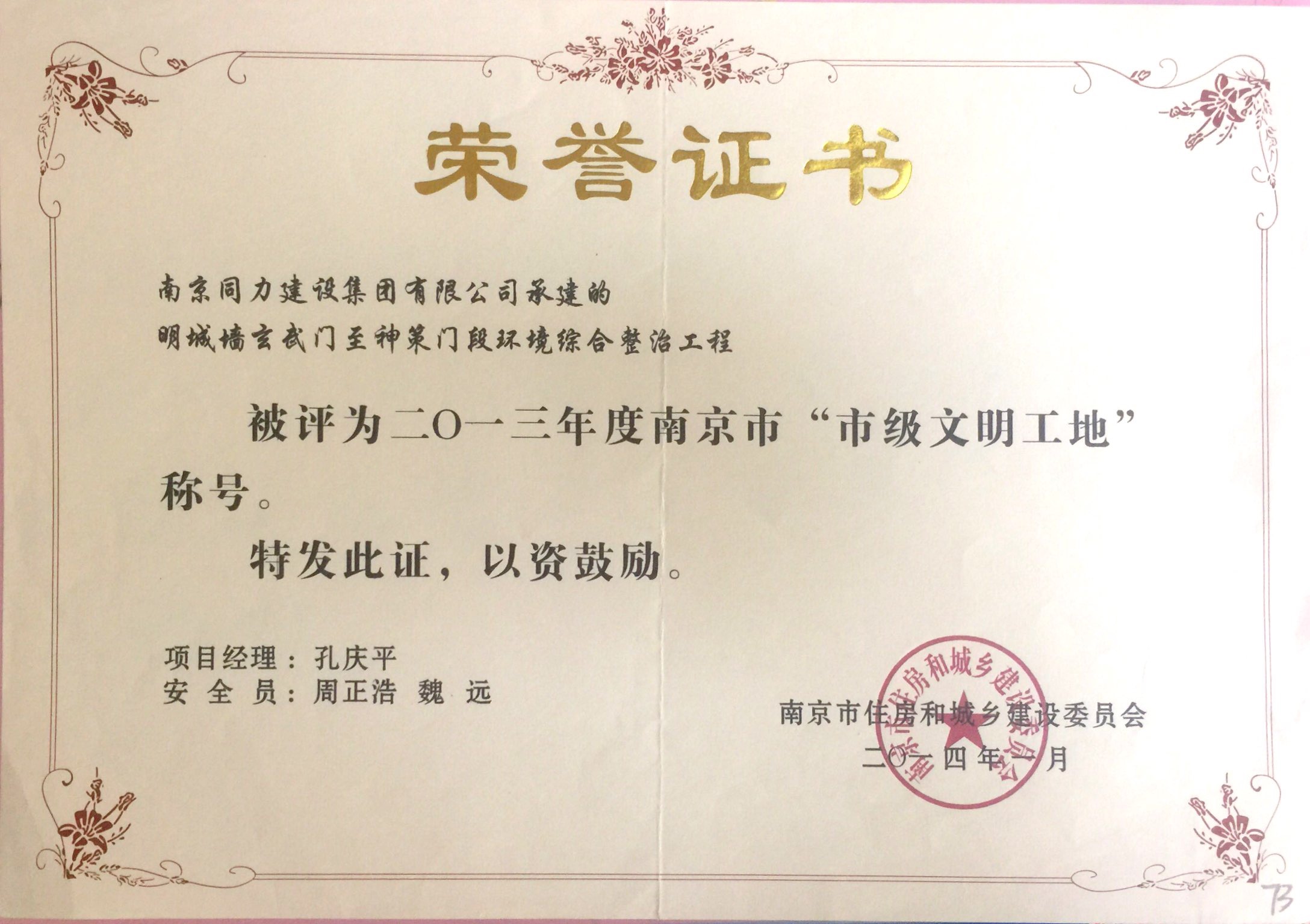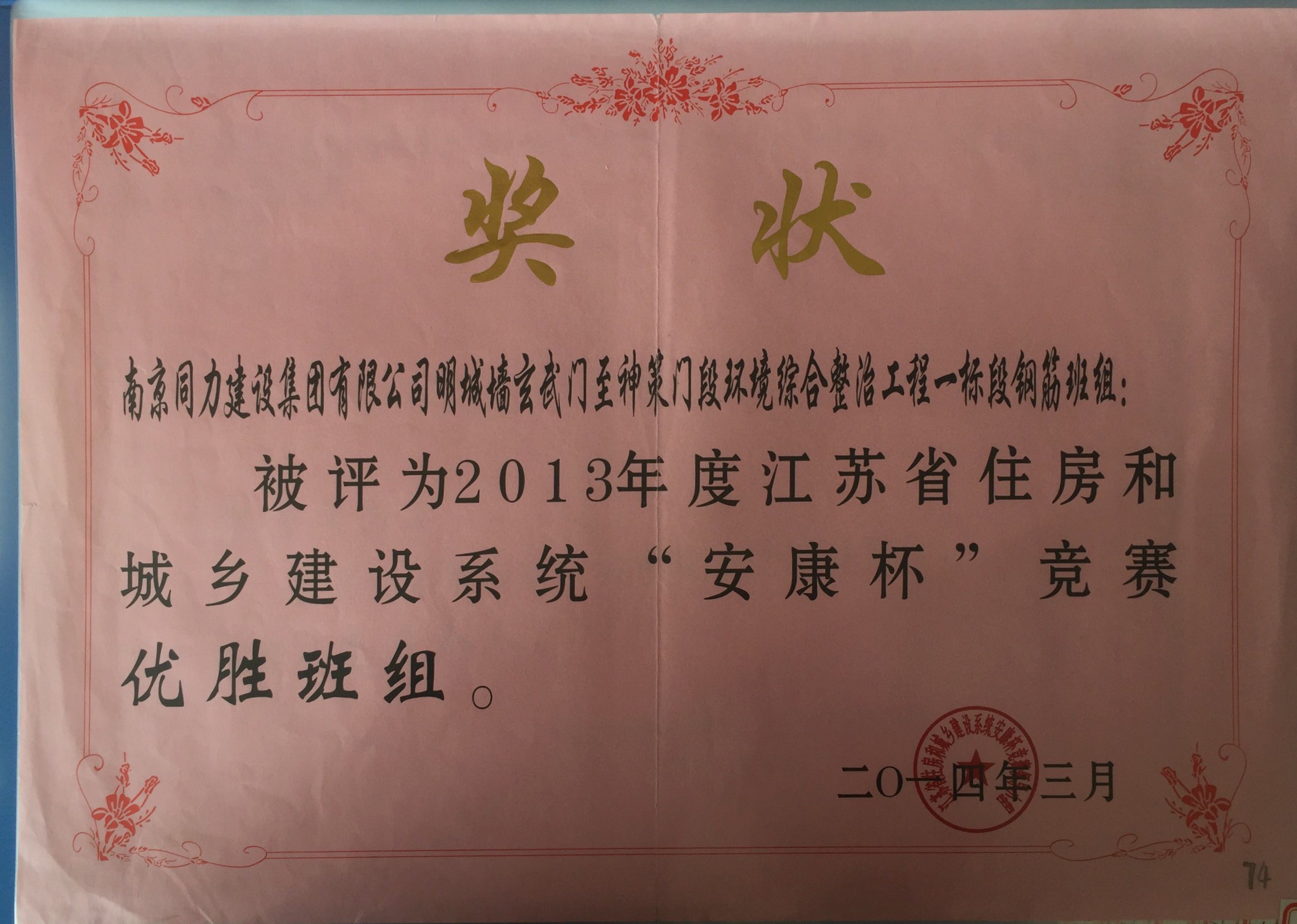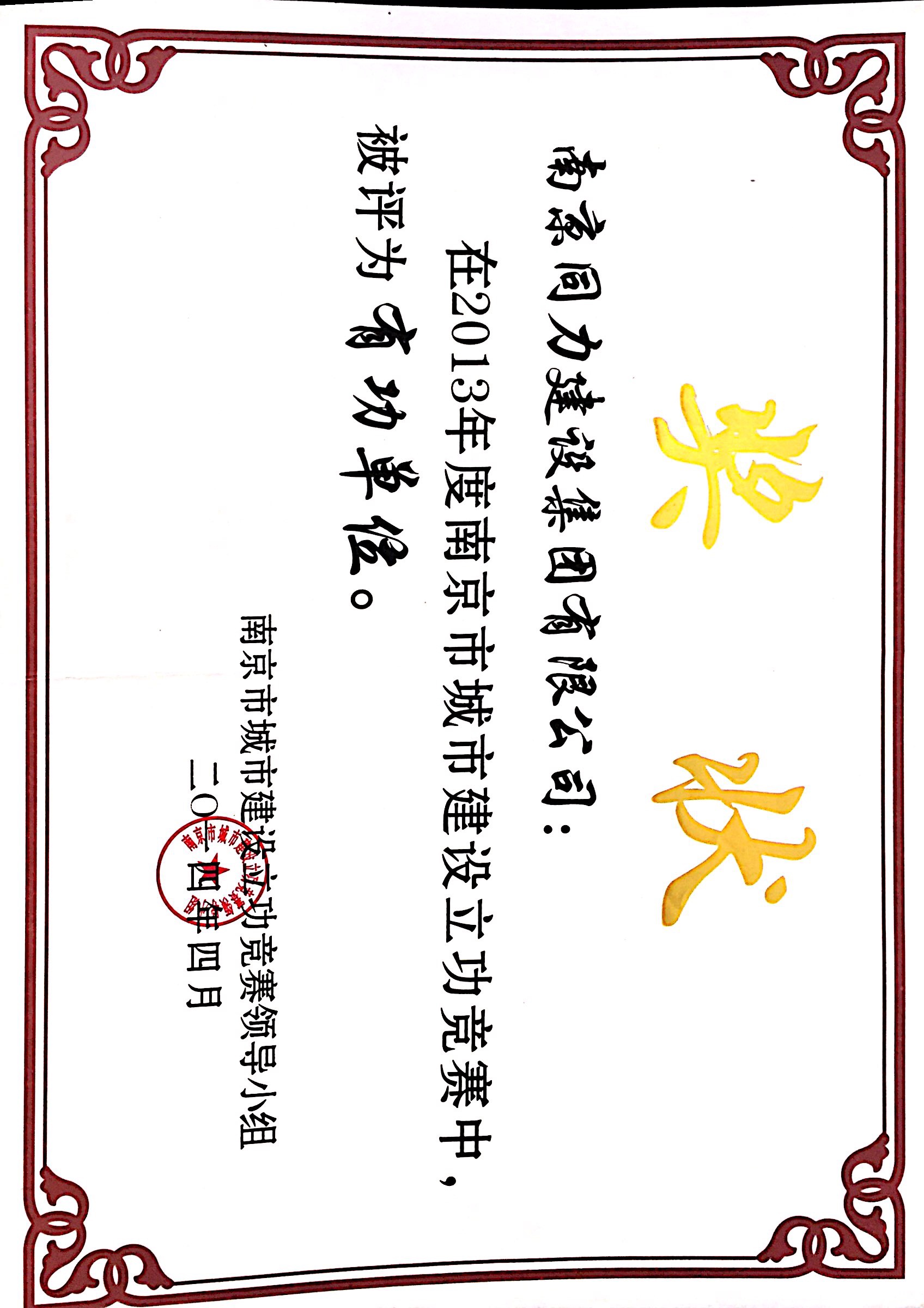 在2013年度南京市城市建設(shè)立功競(jìng)賽中被...