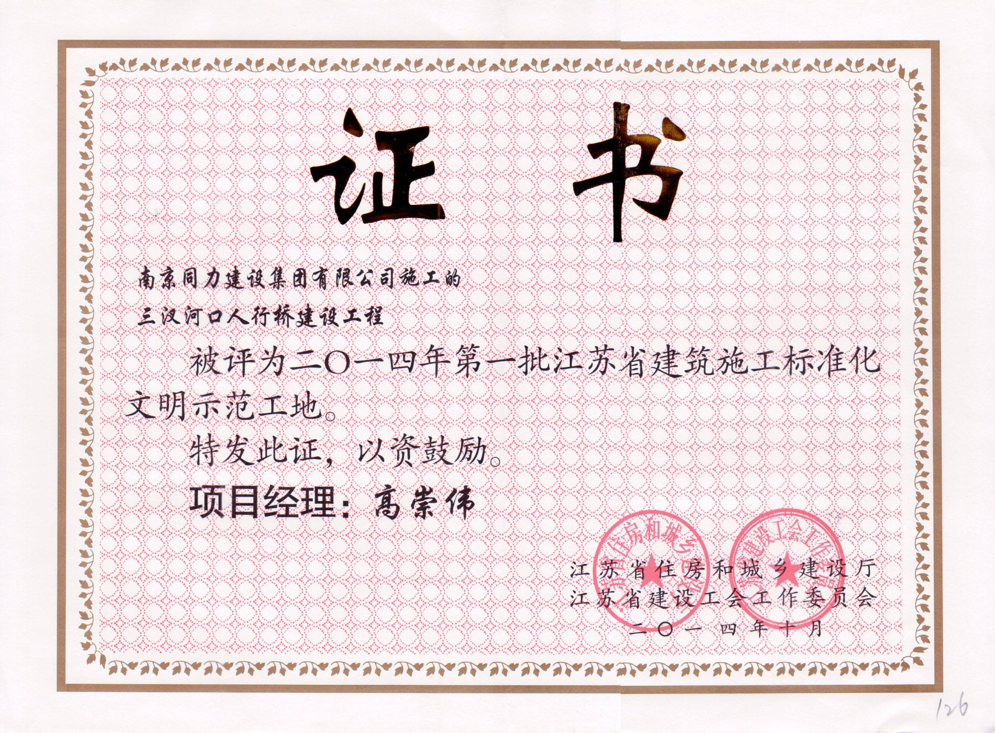 三汊河口人行橋建設(shè)工程獲2014年第一批...
