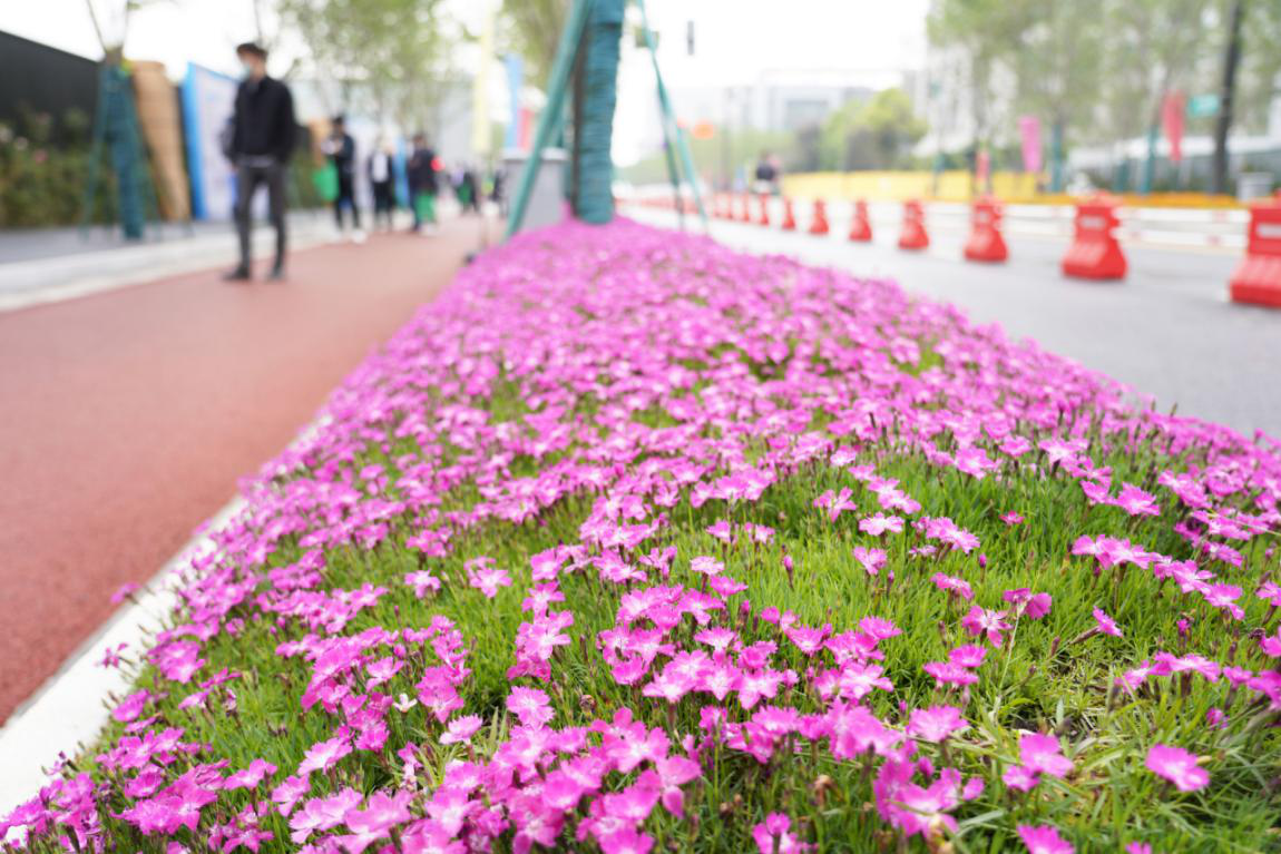 鳳滁路沿線種植了大量的櫻花樹,到了陽春三月,櫻花盛宴吸引了眾多市民前來觀賞。靚麗的綠化分隔帶,采用了各種顏色搭配的三色堇、 歐石竹等植物,打造精致靚麗的視線焦點。層次感鮮明的立體式綠化分布綠色的草皮、大游行爬墻扮靚圍墻。